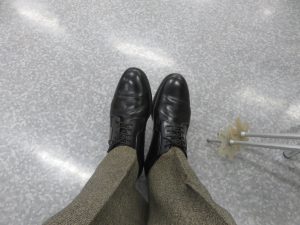 『今日の場所は傷つけては、いけないので、滑り止め付きの革靴にしました。』
