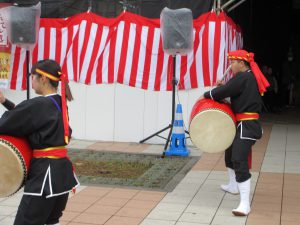 那覇市国際通りで太鼓の披露をしていました