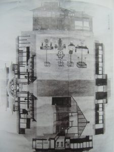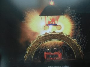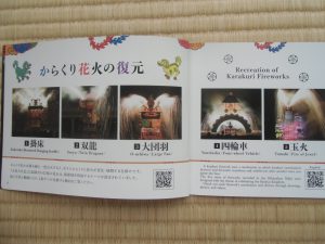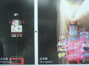 鎌倉芳太郎撮影の写真で原図では現存しない。仲秋宴における御庭の舞台と、からくり花火4基が描かれている。御城舞台の屋根に擬宝珠が載っている唯一の資料で橋掛りや楽屋も確認できる。絵の上方に描かれる「からくり花火」は、左から大団羽・玉瓢箪・玉火・掛床である。年代不詳とされてきたが、近年1838年の仲秋宴と特定された。